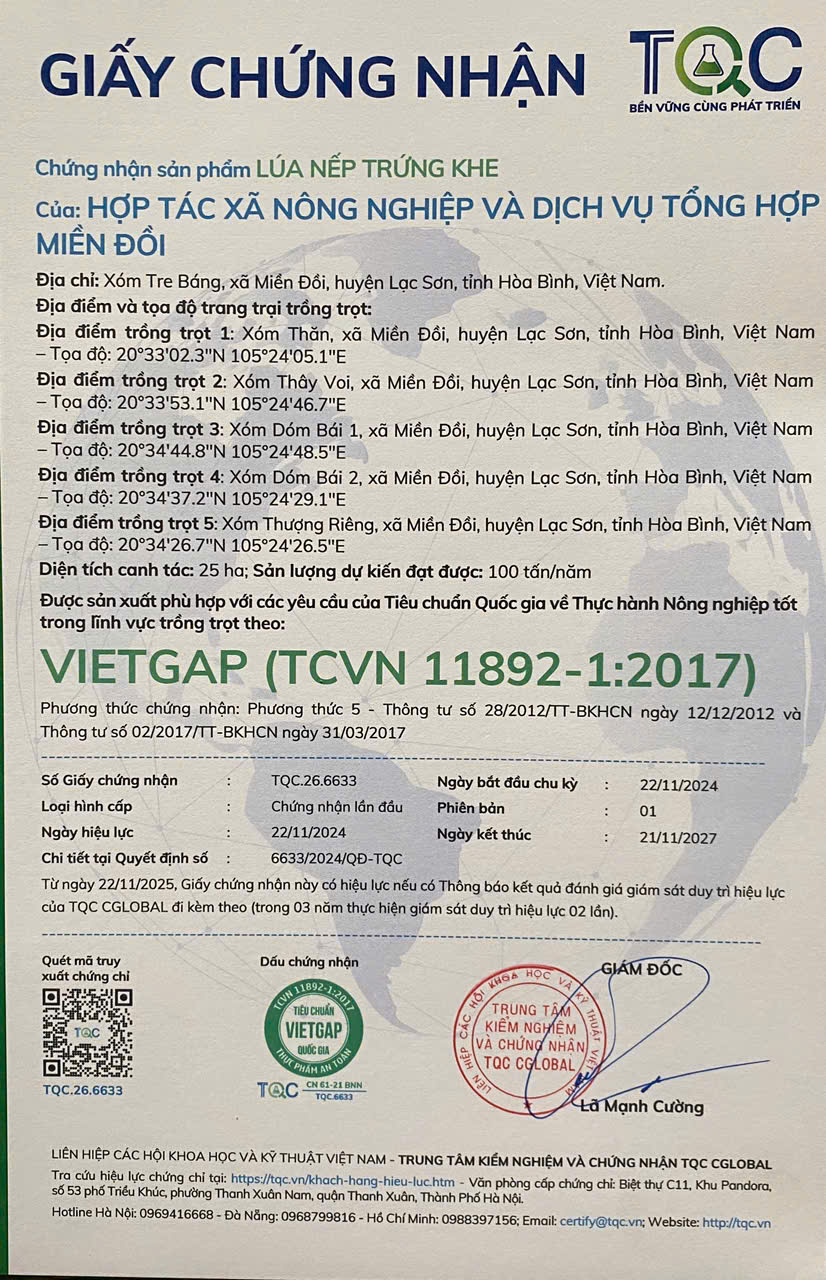 Đối với người Mường hiện nay ở xã Thượng Cốc, tỉnh Phú Thọ( xã Miền Đồi, huyện Lạc Sơn, tỉnh Hòa Bình cũ) vẫn đang cố gắng gìn giữ một giống lúa nếp cổ, có chất lượng tuyệt hảo. Hợp tác xã nông nghiệp và dịch vụ tổng hợp Miền Đồi đang nỗ lực nhân rộng và phát triển giống nếp này thành thương hiệu “Gạo nếp trứng khe”.
